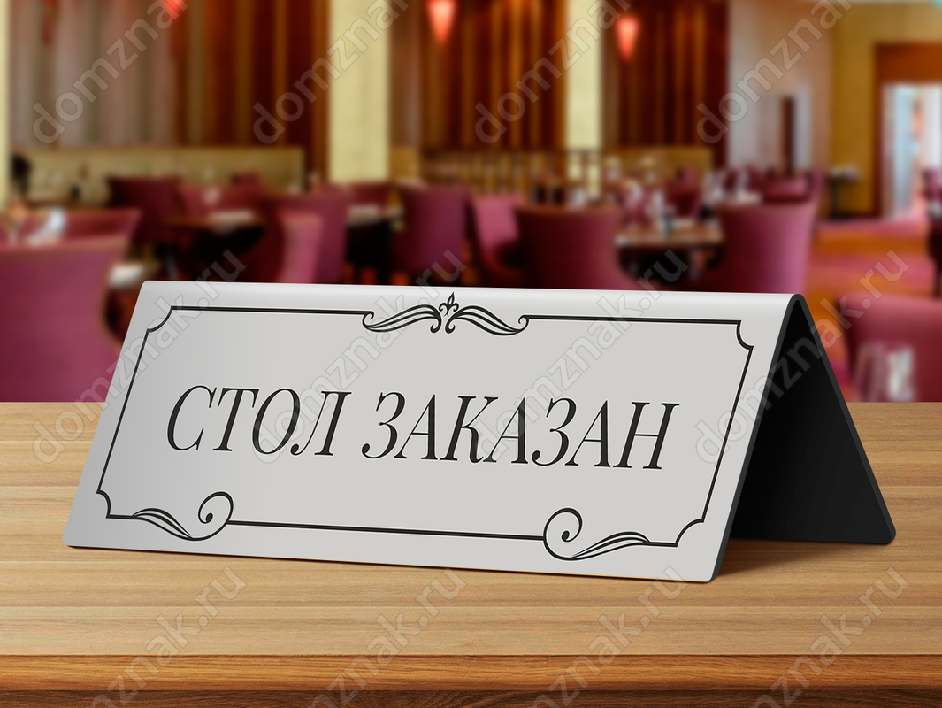 Настольная табличка изготавливается из двухслойного пластика, толщиной 1,5 мм. Изображение наносится по технологии лазерной или механической гравировки. В процессе гравировки снимается верхний цветной (металлизированный) слой, оставляя видимым внутренний контрастный слой.