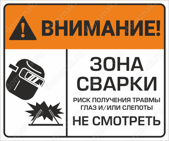 Табличка «Внимание! Зона сварки не смотреть.»