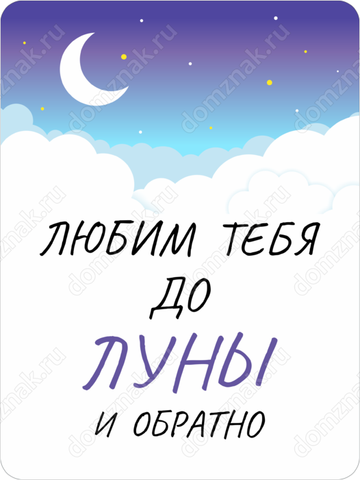 Табличка «Любим тебя до луны и обратно» изготовлена из пластика ПВХ, толщиной 4 мм. Изображение наносится по технологии УФ-печати. Табличка предназначена для использования как в помещении, так и на улице.