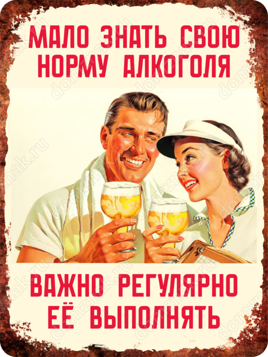 Табличка «Мало знать свою норму алкоголя. Важно регулярно ее выполнять»
