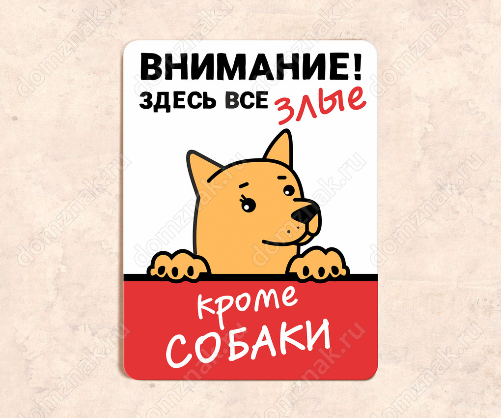 Табличка «Внимание! здесь все злые кроме собаки»